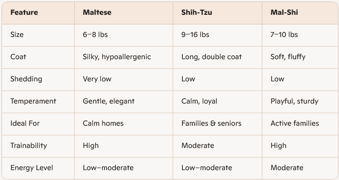 Maltese vs. Shih‑Tzu vs. Mal‑Shi