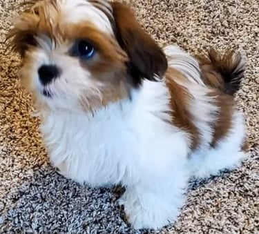 This video shows Lizzi exploring with confidence and joy. Raised in our loving home in Humble, Texas, she grew into a happy, social, and well‑loved Mal‑Shi puppy.